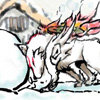 Description: Amaterasu enjoying the breeze; leaves around in the Galestorm brushstroke